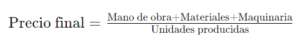 Una fórmula sencilla para calcular el coste de confección es: